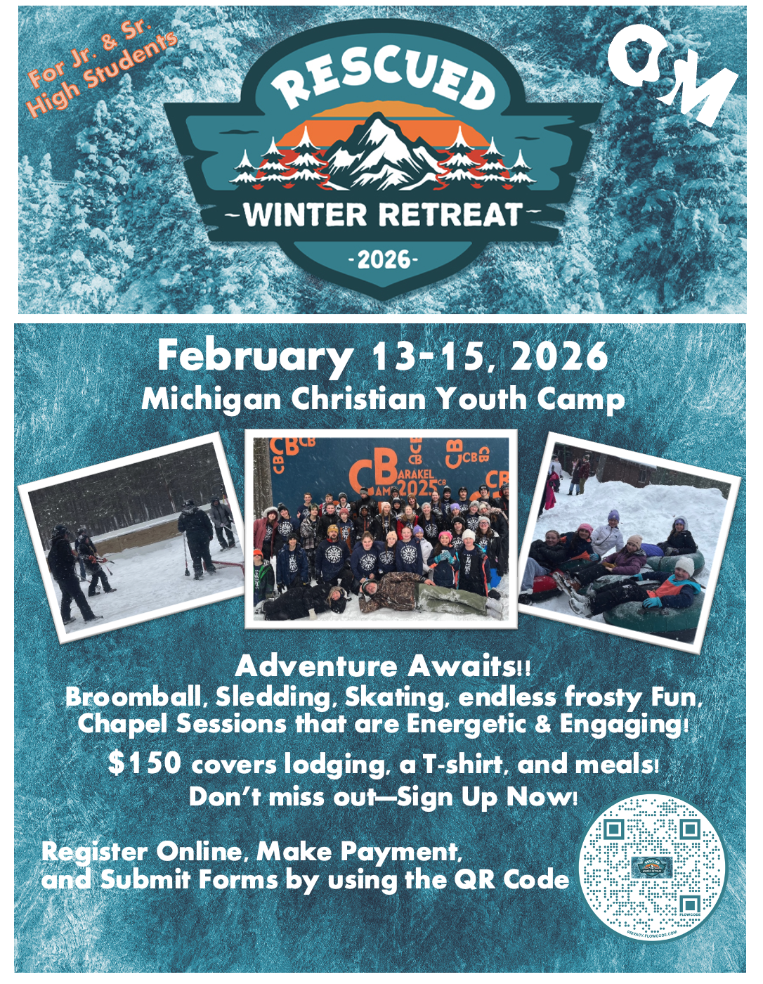 Come join for an exciting fun filled weekend of Winter Camp!! There will be winter activites, games, teen-lead worship and energetic, Biblical messages. The Gospel will be shared and you will be challenged to live out your faith. Bring your friends!!